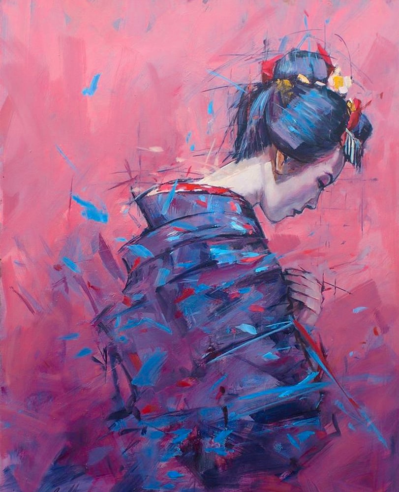 ‘The Black Kimono’ limited edition giclee print. Museum quality printed on heavyweight 100% cotton acid free paper. Each print is signed by the artist. Image size is 44.7cm /17.5 inches wide by 57.7cm / 22.5inches high on paper size 49.1cm / 19 inches wide by 61cm /24inches high